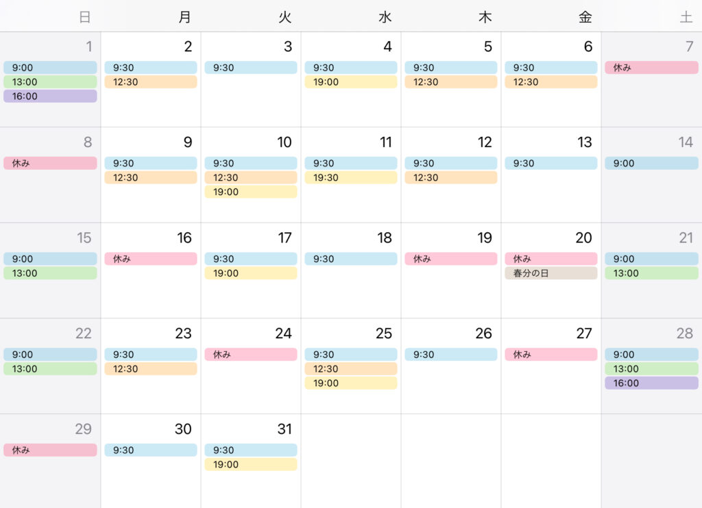 インスタグラムに投稿しています営業日カレンダーをご確認下さい